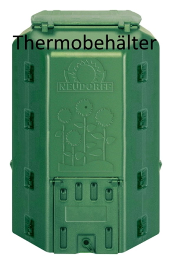 Im Handel werden verschiedene Kompostbehälter aus Metall, (vorsicht bei verzinkten Kompostern, sie oxidieren bei der Rotte und hinterlassen Schwermetalle) und Holz. Die Thermokomposter aus Kunststoff eignen sich nur für kleine Hausgärten, wo überwiegend Küchenabfälle kompostiert werden sollen. Es sei denn,man will das Geld ausgeben für ca 12 – 15 Thermokomposter. Die Materialien für den Thermokomposter müssen möglichst klein geschnitten sein um den Kompostiervorgang in Gang zu bringen. Außerdem sollte zumindest beim ersten Ansatz/Befüllung des Kompostbehälters ein Kompostbeschleuniger in Form eines organischen NPK – Düngers oder Lebende Mikroorganismen eingebracht werden. Bei weiteren Ansätzen reicht dann möglicherweise eine Schaufel des reifen Kompostes, um den Vorgang zu beschleunigen.